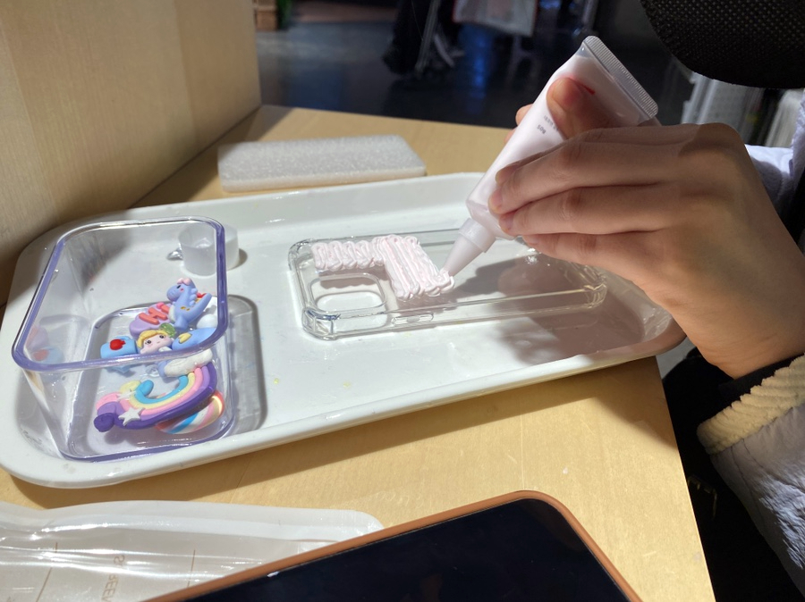 CREAM GLUE를 케이스 뒷면에 칠해준다.