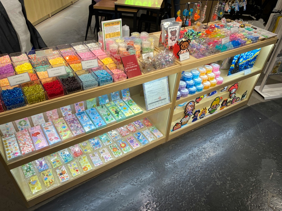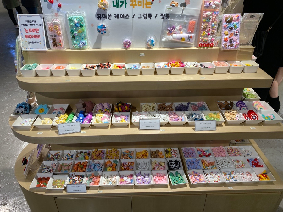 블럭버스 용산아이파크몰점은 디폼블럭 및 슬라임, 데코덴, 키링 등을 만들고 꾸미는 체험 공간이다.