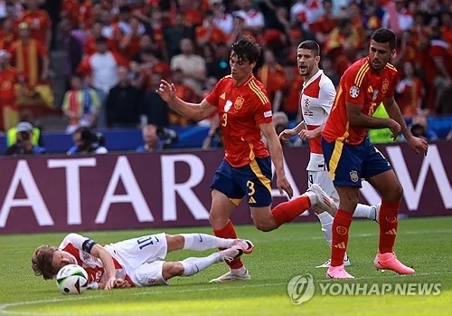 크로아티아는 16일 독일 베를린의 올림피아슈타디온에서 열린 유로 2024 조별리그 B조 1차전에서 스페인에게 0-3으로 패배했습니다. 크로아티아는 전반 10분 이후 점유율을 높이며 반격의 기틀을 마련했지만, 스페인의 강한 압박과 빌드업 체계에 완벽히 무너졌습니다. 전반 29분 알바로 모라타, 전반 32분 파비안 루이스, 전반 추가시간 다니엘 카르바할의 연속골로 스페인은 단숨에 3-0으로 앞서갔습니다.