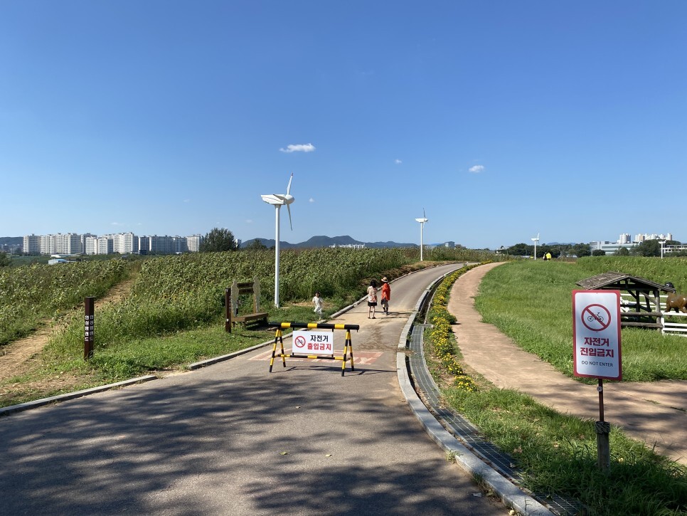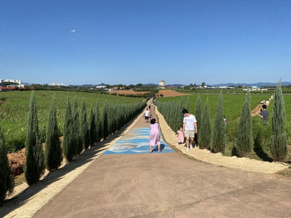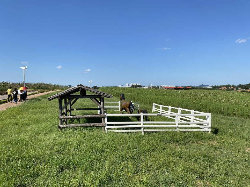 봄에는 호밀과 유채, 여름에는 해바라기, 가을에는 코스모스와 핑크뮬리가 동산을 이뤄 마치 외국에 온 듯한 환상적인 분위기를 연출한다.