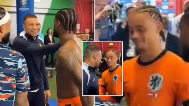 프랑스와 네덜란드는 22일 독일 라이프치히의 레드불 아레나에서 열린 유로 2024 조별리그 D조 2차전에서 0-0으로 비겼습니다. 음바페는 후반전 교체 출전 후 경기 후 터널에서 네덜란드 선수들과 대화를 나눴습니다. 시몬스가 가까이 오자 음바페는 "시몬스는 우리를 죽이고 있었다고 생각했다"라며 웃음을 터뜨렸습니다. 시몬스는 멋쩍은 표정을 지었습니다.