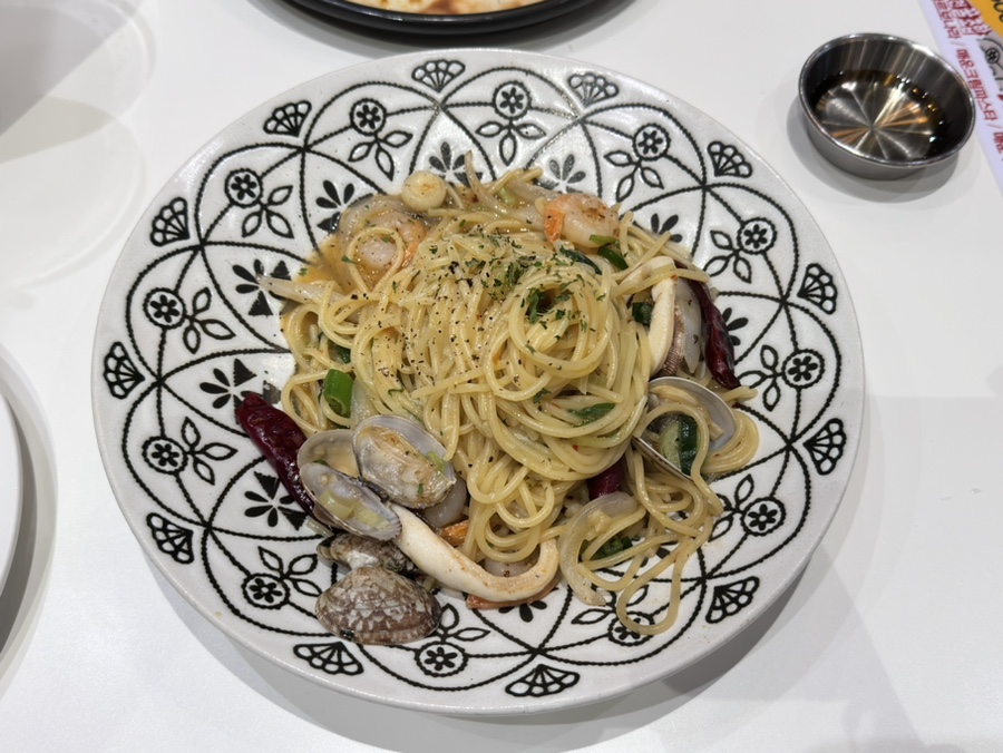 씨푸드 오일 파스타는 해산물이 가득 들어있어 신선하고 풍미가 가득했어요.