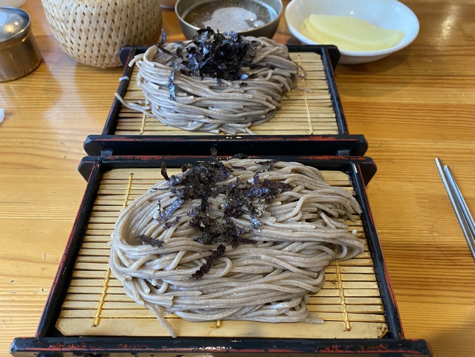 이곳에선 신안의 비금도 소금과 봉평 메밀만을 이용해 면을 직접 만드는데, 미리 숙성시켜 놓은 면을 주문과 동시에 삶아 낸다.