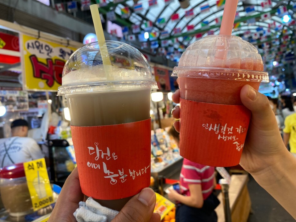 육회 먹으러 가기 전 식혜와 수박주스 준비