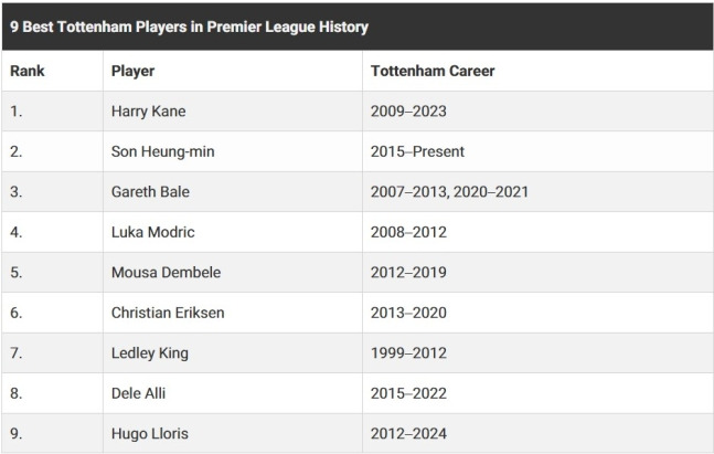 손흥민, 토트넘 역대 최고 선수 2위로 선정