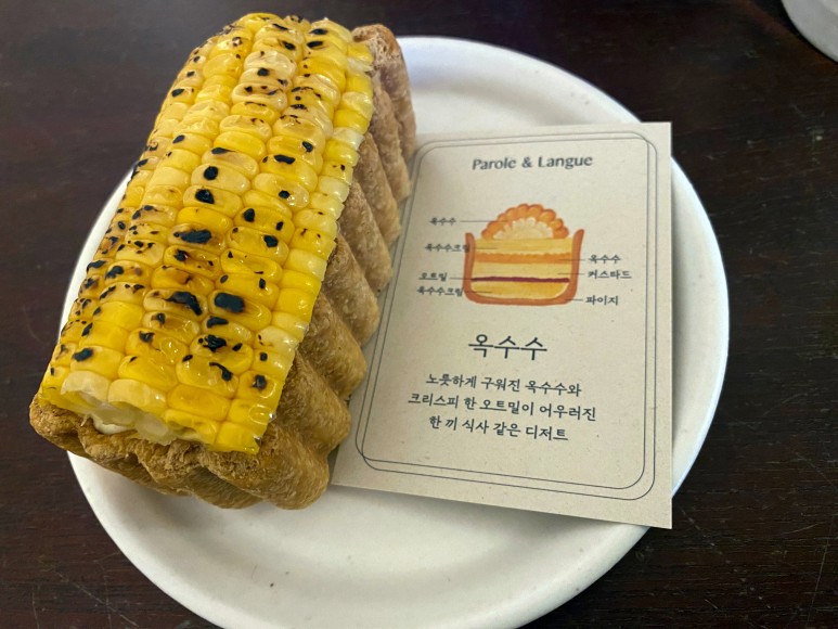 옥수수 : 노릇하게 구워진 옥수수와 크리스피한 오트밀이 어우러진 한끼 식사같은 디저트
