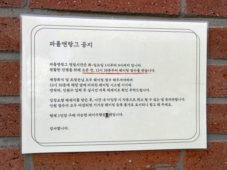 주문 후 빈자리가 나올 때까지 더 대기 하는 점 양해 부탁드립니다.