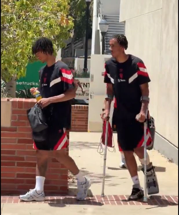 지난 28일, 미국 캘리포니아의 소파이 스타디움에서 열린 아스널과의 프리시즌 경기에서 맨유는 1대2로 패배했습니다. 이 경기에서 주축 공격수 라스무스 호일룬과 함께 레니 요로가 부상을 당했습니다. 호일룬은 햄스트링 부상을 호소하며 스스로 경기를 중단했지만, 큰 부상은 아닌 것으로 보입니다. 그러나 요로의 경우, 발목 부상이 심각해 목발을 사용하며 이동하는 모습이 포착되었습니다.