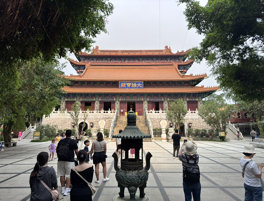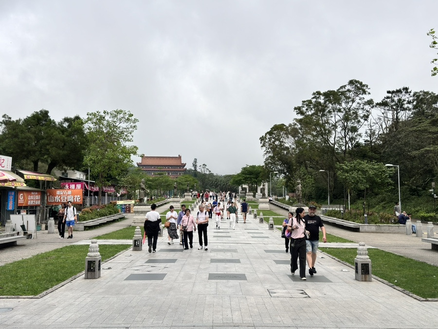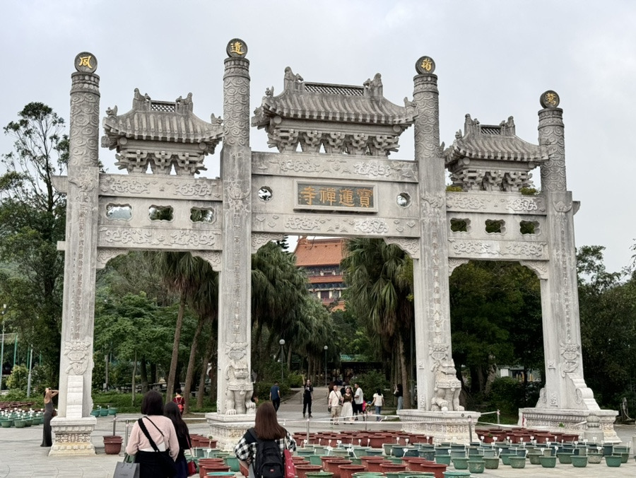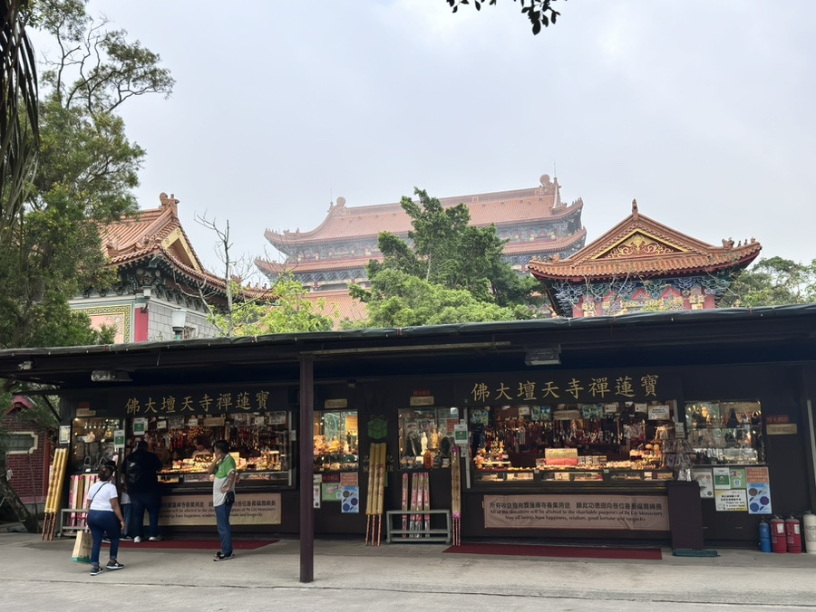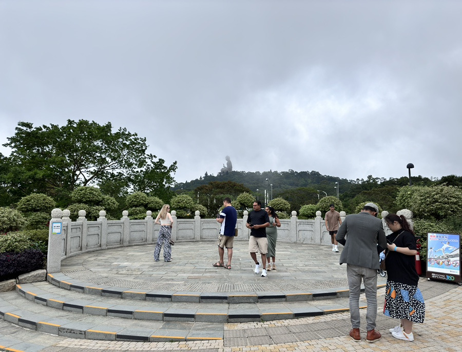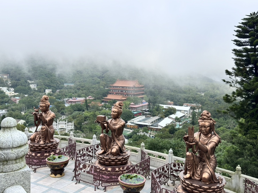 천단대불 아래에서 바라보는 풍경은 정말 일품이었어요. 홍콩의 아름다운 자연과 함께 웅장한 부처상을 보니 마음이 평온해졌습니다. 옆에 있는 포 린 사원도 구경했어요.
