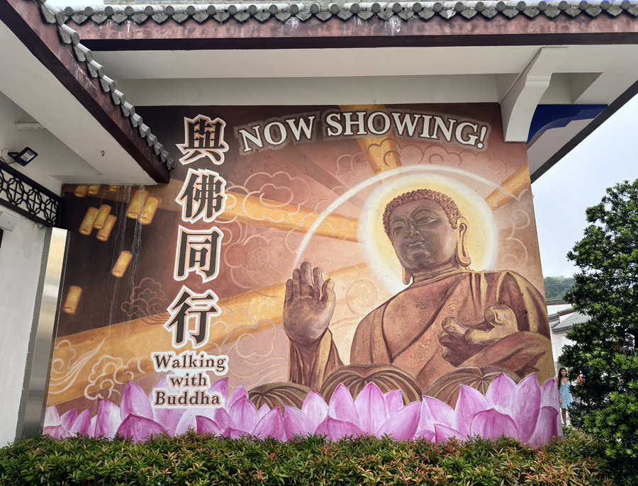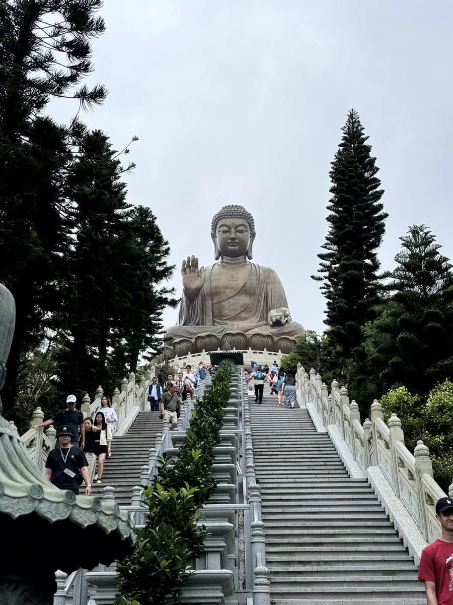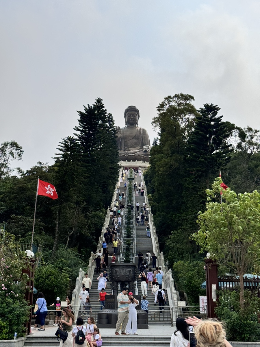 옹핑마을에 도착하니, 가장 먼저 눈에 띄는 것은 바로 천단대불, 티안 탄 부처상이었습니다. 티안 탄 부처상은 정말 거대하고 웅장해서 그 앞에 서니 압도되는 느낌이었어요. 부처상을 보기 위해 계단을 올라갔는데, 올라가는 길도 아름답게 잘 꾸며져 있어 즐거웠습니다.