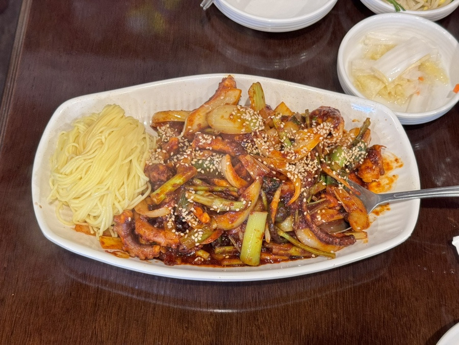 불맛이 가득한 낙지볶음은 매콤하면서도 감칠맛이 뛰어나서 밥과 함께 먹기 딱 좋습니다.