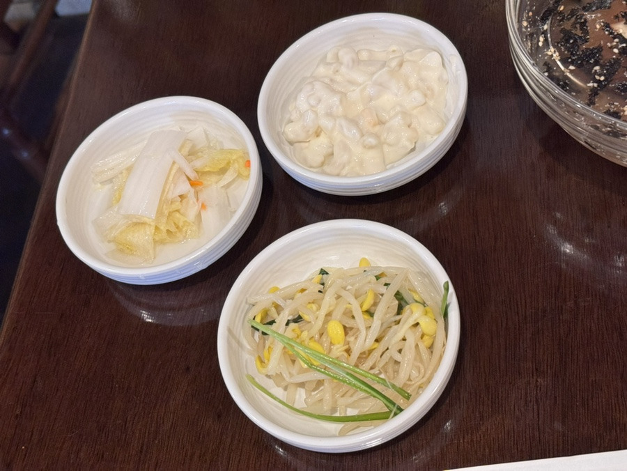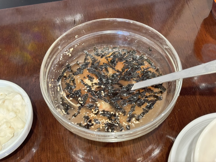 기본으로 제공되는 묵사발과 소면사리가 식사 시작을 상쾌하게 해줍니다.