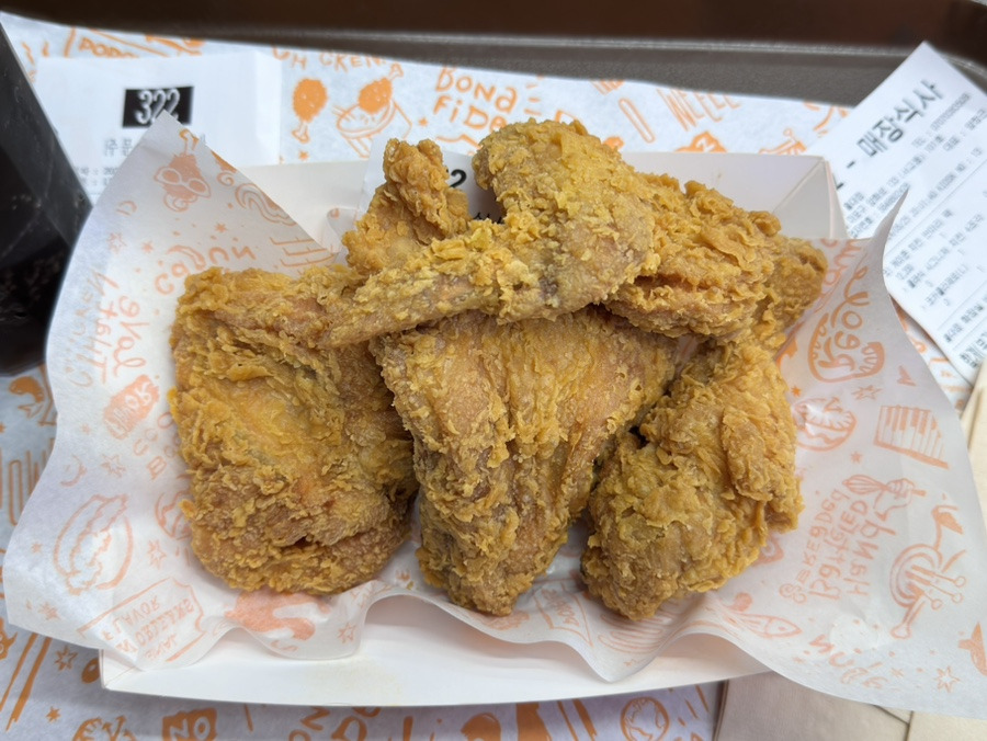 오 케이준 치킨 반마리 팩을 먹었는데, 시그니처 치킨 4조각과 코카콜라(M)로 구성되어 있었습니다.