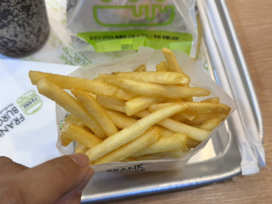 프랭크버거세트를 먹었는데, 육즙 가득한 수제패티와 신선한 야채가 잘 어우러져 기본에 충실한 미국 동부식 오리지널 버거였습니다.