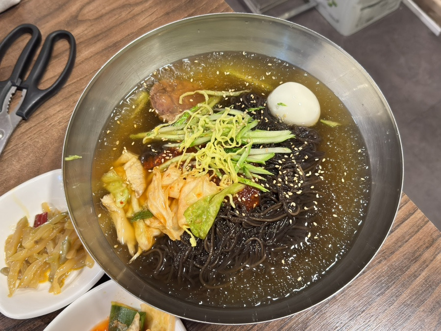 카오위와 냉면을 먹었는데, 솔직히 맛은 좀 별로였어요.