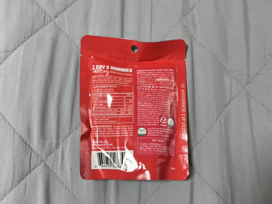 안녕하세요! 이번에 올리브영에서 닥터브라이언 비타민C&D 3000 복숭아맛을 구매했습니다.