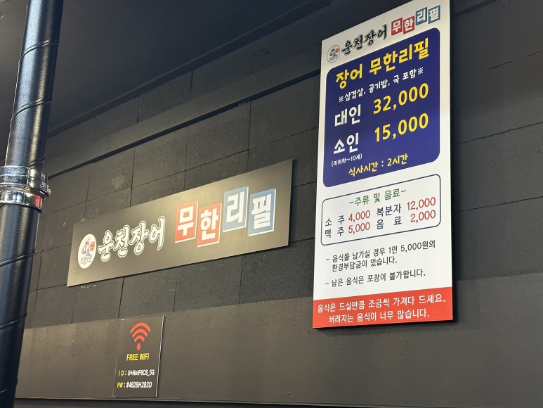 아산 배방에 새로 생긴 장어 무한리필집 운천장어.