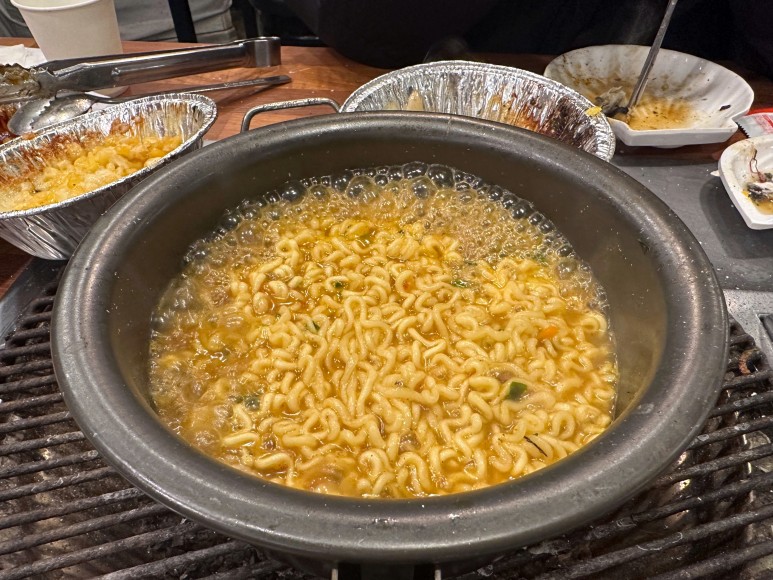 1. 라면냄비는 '셀프바 왼쪽 정수기'에 있습니다!
