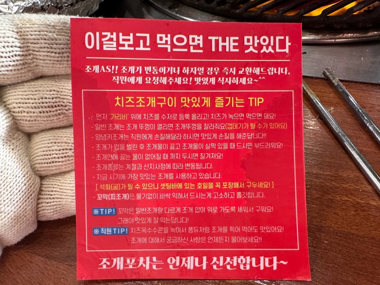 직원TIP! 치즈옥수수콘을 녹여서 퐁듀처럼 조개를 찍어 먹어도 맛있어요! 조개에 대해서 궁금하신 사항은 언제나 물어보세요!!
