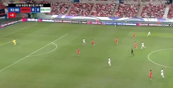 후반 추가시간에는 수비가 완전히 붕괴되며, 팔레스타인 선수 마흐무드 아부 와르다에게 완벽한 노마크 기회를 허용했습니다. 다행히 조현우가 슈팅을 막아내며 실점을 면했지만, 이런 장면들은 FIFA 랭킹 96위 팔레스타인을 상대로조차 안정적인 수비를 보여주지 못한 대한민국의 현실을 보여주었습니다.