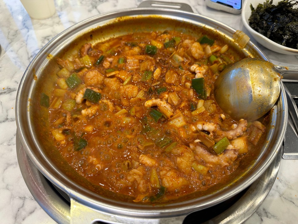 - 뚜껑을 바로 열지 마시고 낙지가 붉게 익어갈 때쯤 양념과 잘 저어주세요.