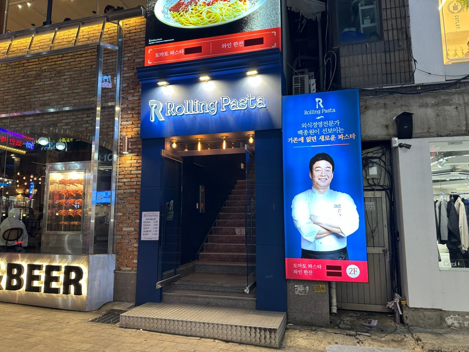 신세계백화점 건너편 구도로통닭 2층에 위치한 롤링파스타 천안신부점