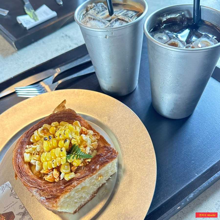 저는 초당 옥수수 번파이와 아메리카노 두 잔을 시켰는데, 부드럽고 달콤한 옥수수향이 은은하게 퍼지는 커스터드크림이 정말 매력적이었어요.