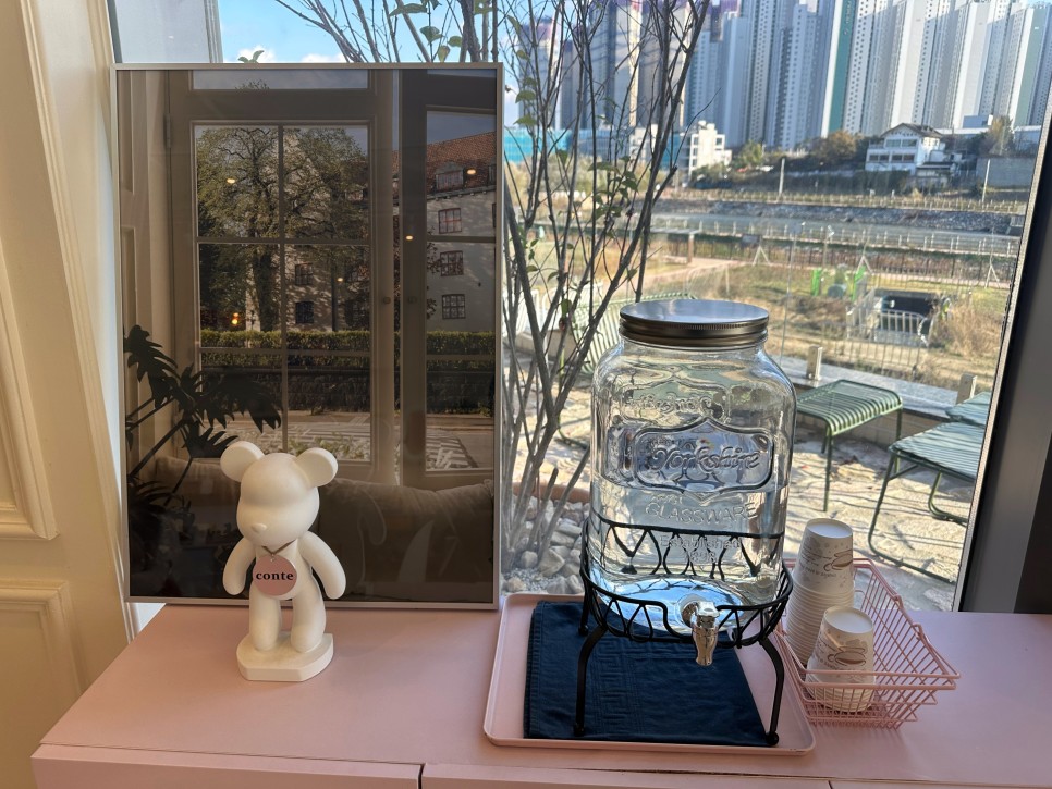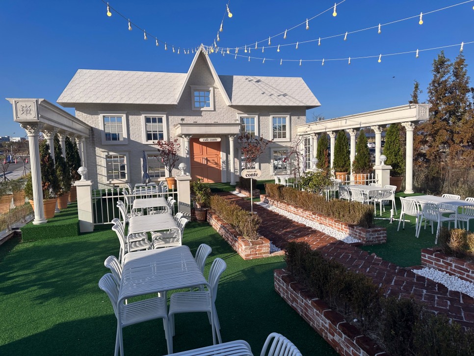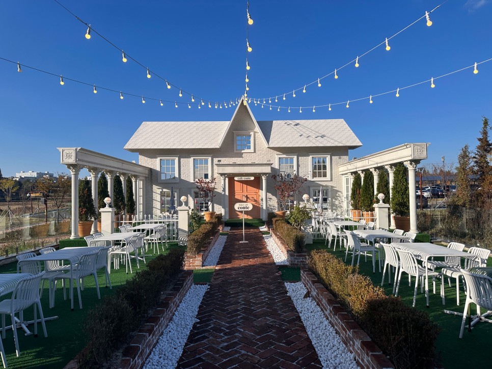 성성동 방문자센터에 주차 후 오른쪽 산책로를 따라 내려오면 보이는 꽁뜨 천안카페