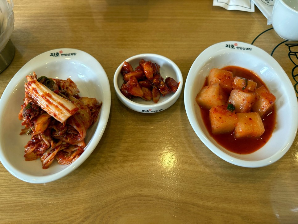 밑반찬 : 겉절이, 깍두기, 알마늘무침
