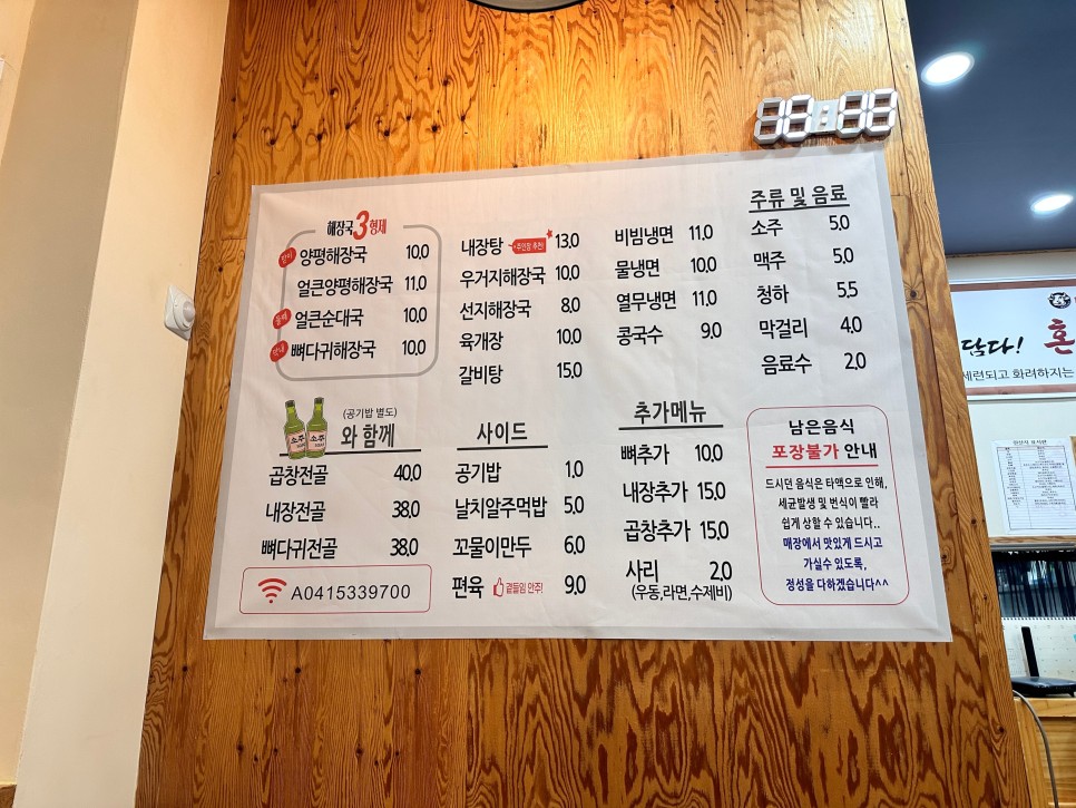 아산 배방 월천지구에 위치한 일품양평해장국.