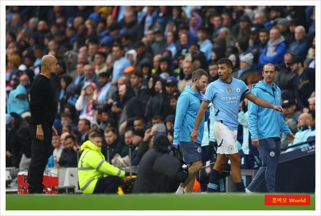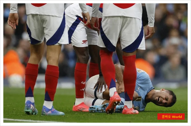 로드리는 23일 아스널과의 경기 도중 코너킥 상황에서 아스널의 미드필더 토마스 파티와 경합하던 중 무릎이 꺾이며 고통을 호소했습니다. 당시에는 특별한 태클이나 충돌 없이 발생한 부상이었기에 더욱 안타까운 상황이었습니다. 로드리는 경기장에서 바로 치료를 받았지만 더 이상 경기를 소화할 수 없었고, 결국 그라운드를 떠나야 했습니다.