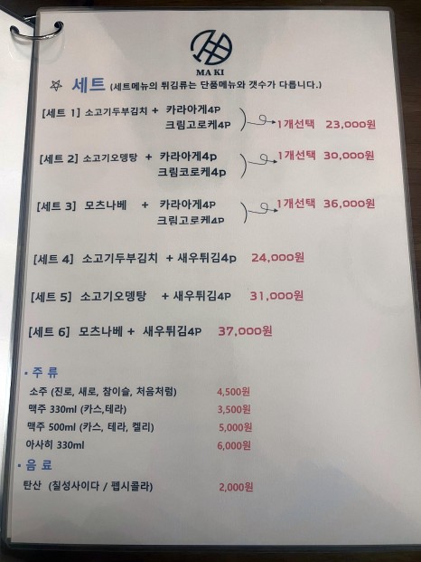 저녁 6시 이후 주류와 함께 많은 이용 바랍니다.