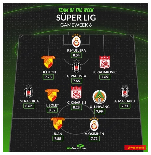 황의조의 이름이 이번 주 '이주의 팀'에 오르며, 그의 활약이 빛났습니다. 특히, 이탈리아 세리에 A 득점왕 출신인 빅터 오시멘과 함께 선정된 것은 더욱 큰 의미를 지닙니다. 오시멘은 페네르바체와의 경기에서 도움을 기록하며 갈라타사라이의 승리를 이끌었고, 황의조는 그의 뛰어난 퍼포먼스와 함께 이주의 팀에 선정되어 다시 한 번 자신의 능력을 인정받았습니다.