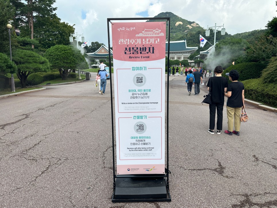 홍보관 외에는 건물 외부만 둘러보는 코스이며 간단한 기념품도 제공되었다. 그리고, 관람한다고 해서 대통령을 직접 볼 수 있을 확률은 매우 적었다. 그러므로 청와대의 외관만 살짝 둘러본다는 마음으로 가야 했다.