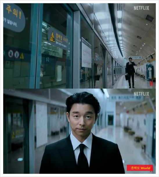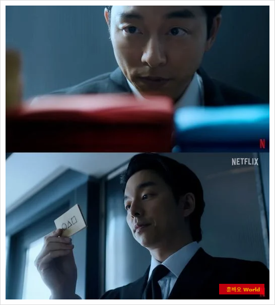 예고편에서 공유는 자신의 집에서 차분하게 출근 준비를 합니다. 고급스러우면서도 무채색으로 가득한 그의 공간은 차가운 분위기를 자아내며, 그가 준비하는 게임이 단순한 놀이가 아님을 암시합니다. 특히 빨간색과 파란색 종이 딱지는 강렬한 대비를 이루며 시청자들의 눈길을 사로잡았습니다. 이 아이템들은 시즌1에서도 등장해 게임의 시작을 알리는 중요한 소품으로 쓰였는데, 시즌2에서도 역시 중요한 역할을 할 것으로 보입니다.