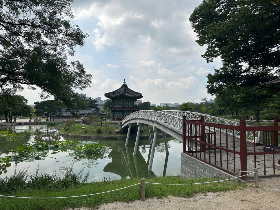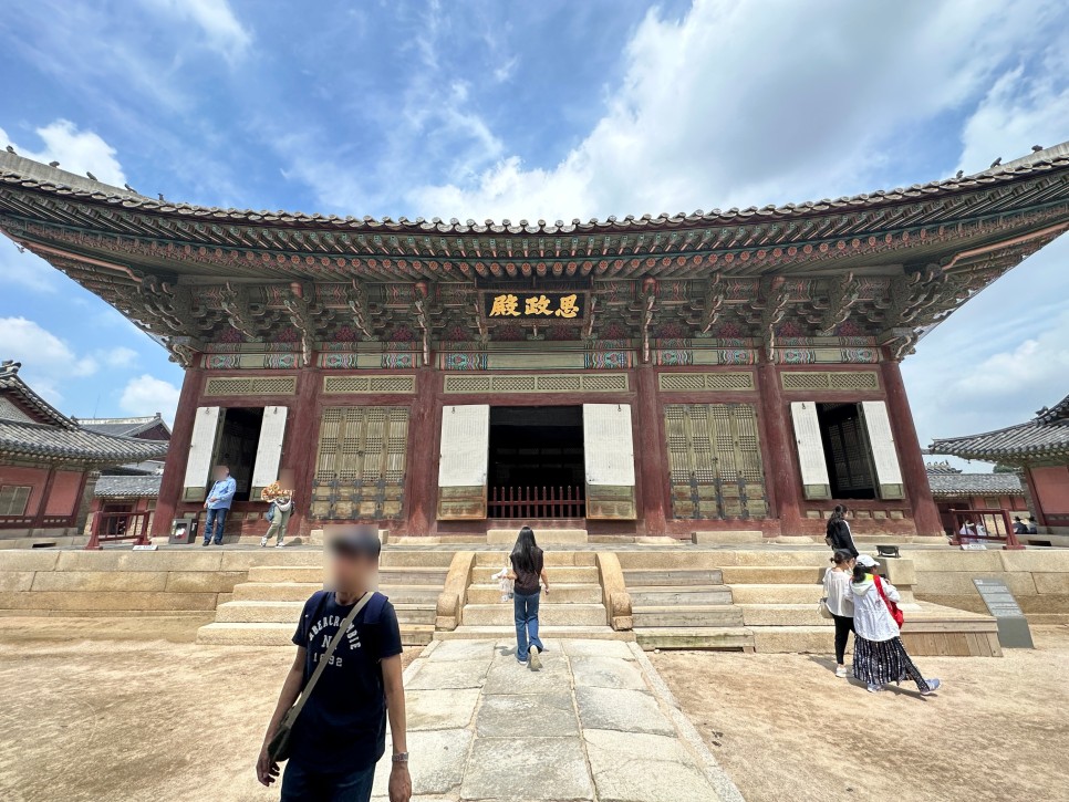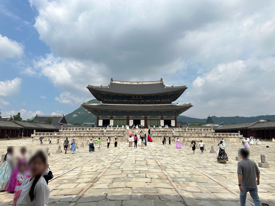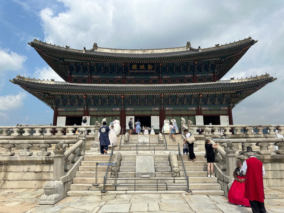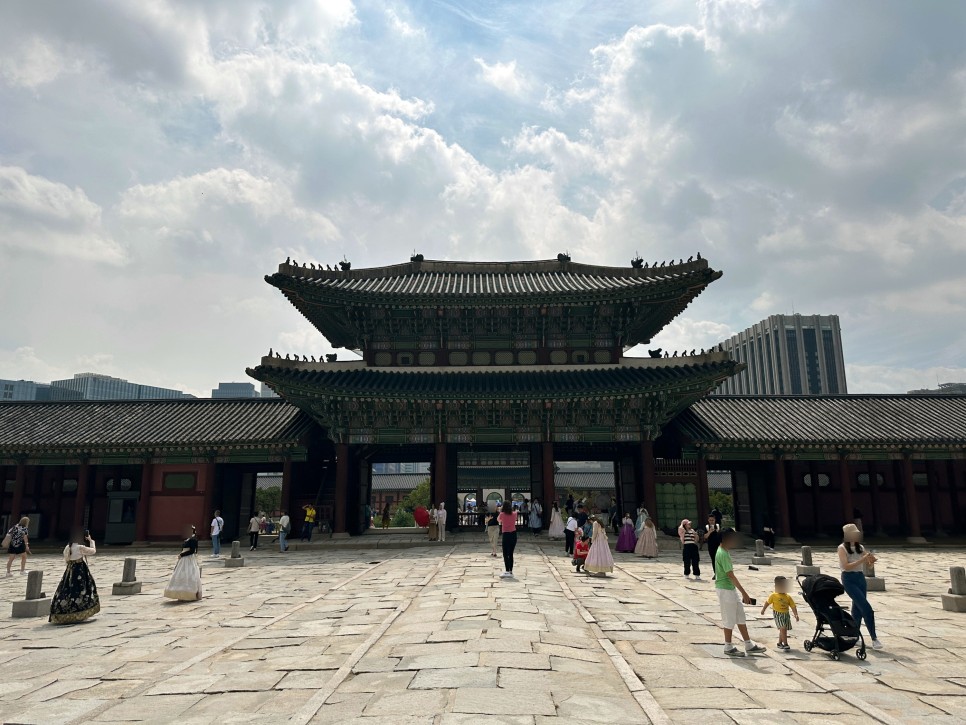 어구에 돌다리인 금천교(禁川橋), 곧 영제교(永濟橋)가 놓여 있고 다리를 건너면 근정문이 있으며 문을 들어서면 정전인 근정전이 이중으로 높이 쌓은 월대 위에 우뚝 솟아 있다.