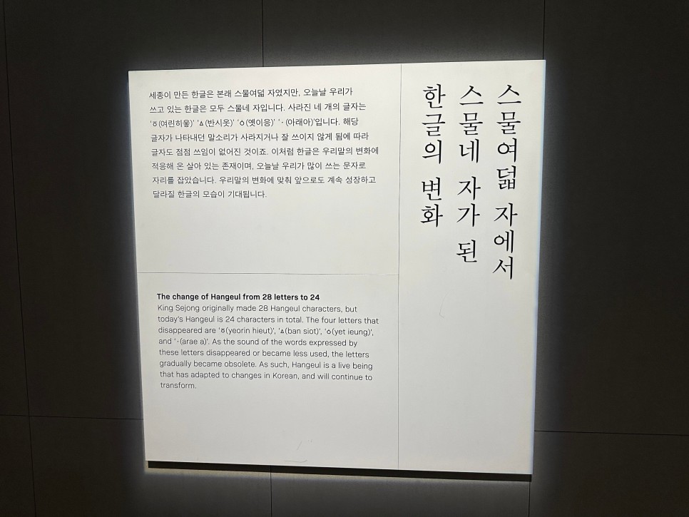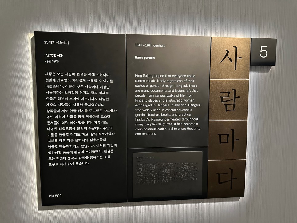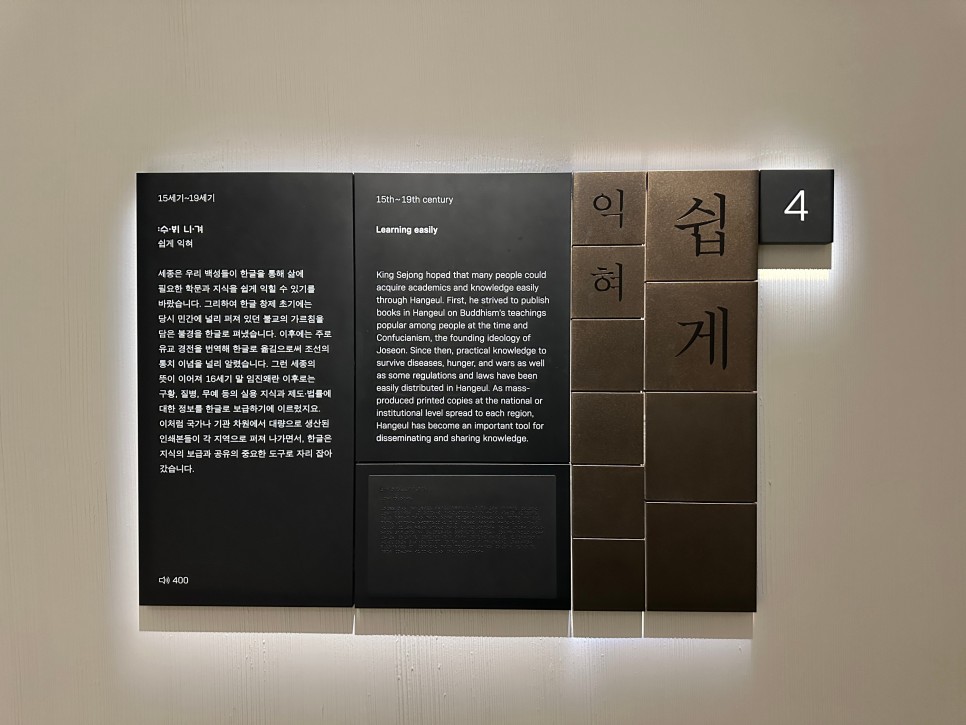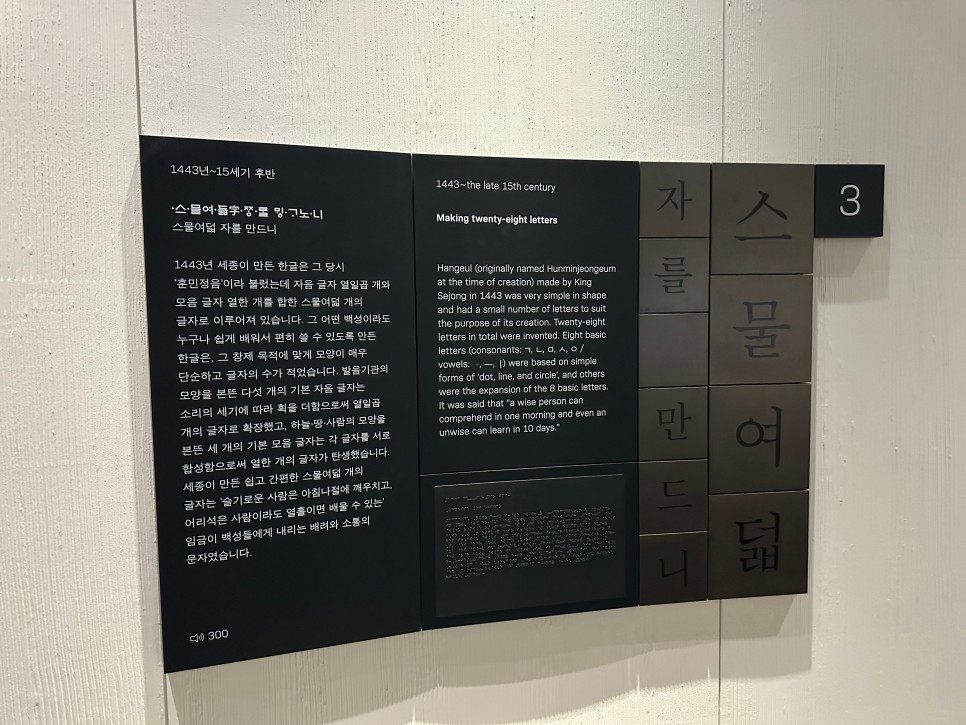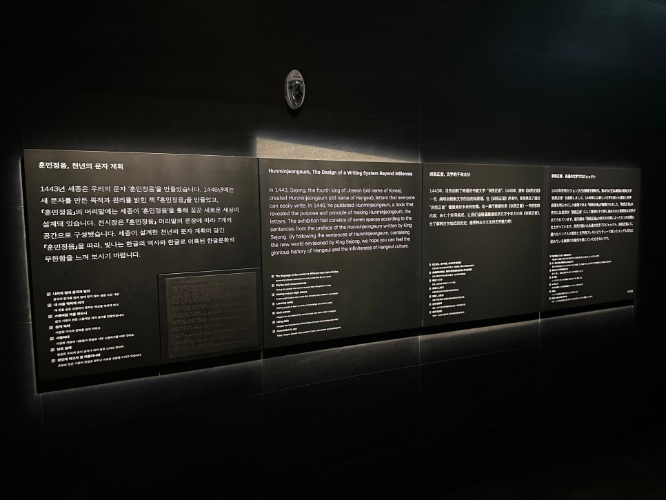 재개장한 상설전시는 <훈민정음, 천년의 문자 계획>으로 전시장은 『훈민정음』을 바탕으로 한글의 역사를 풀어낼 수 있도록 기획했다.