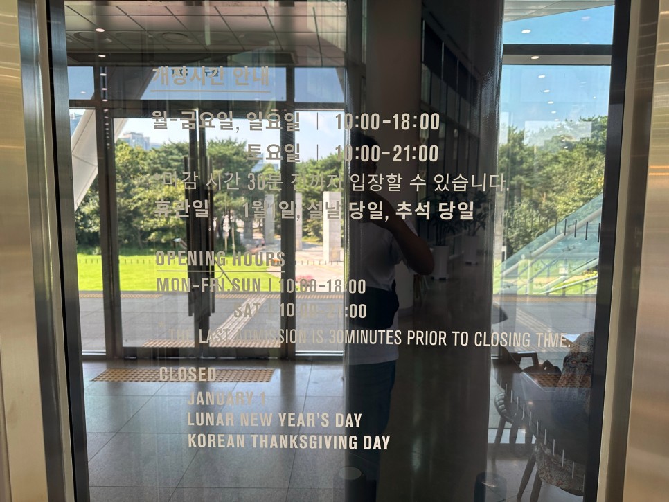 휴관일: 새해 첫날(1.1.), 설날 당일, 추석 당일