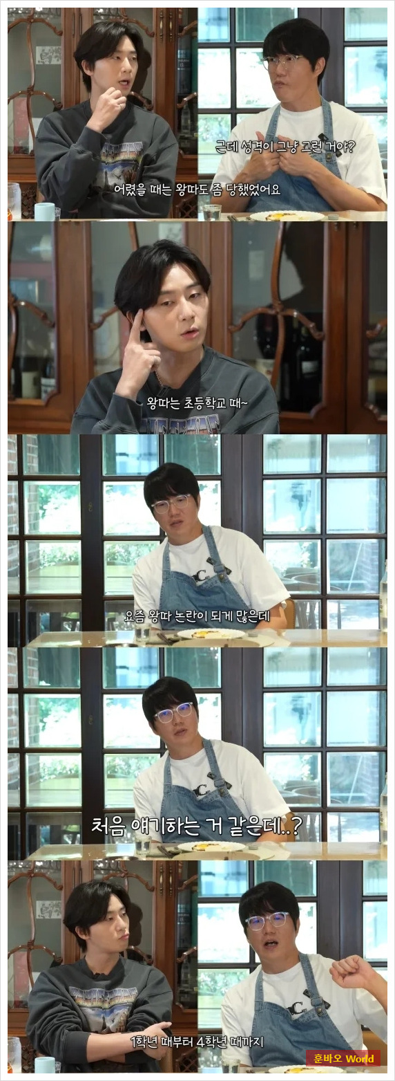 함께 출연한 박서준 역시 왕따 경험을 털어놓으며, 그때 자신감이 부족했던 이유로 자신을 탓했다고 고백했습니다. 연기를 시작한 후 자신감과 자존감을 회복한 그는, 이제는 자신을 긍정적으로 바라볼 수 있게 되었다며 학창 시절의 어려움이 어떻게 자신을 변화시켰는지를 이야기했습니다.