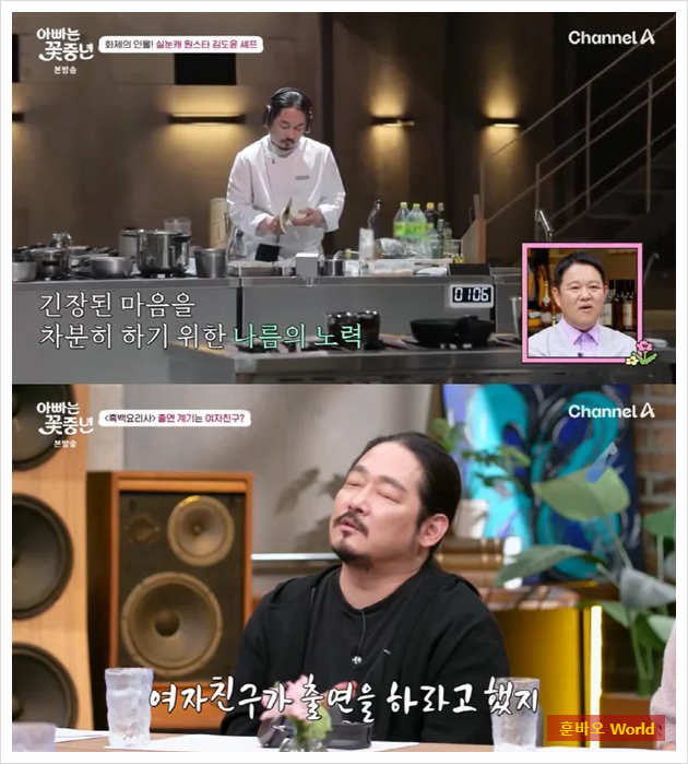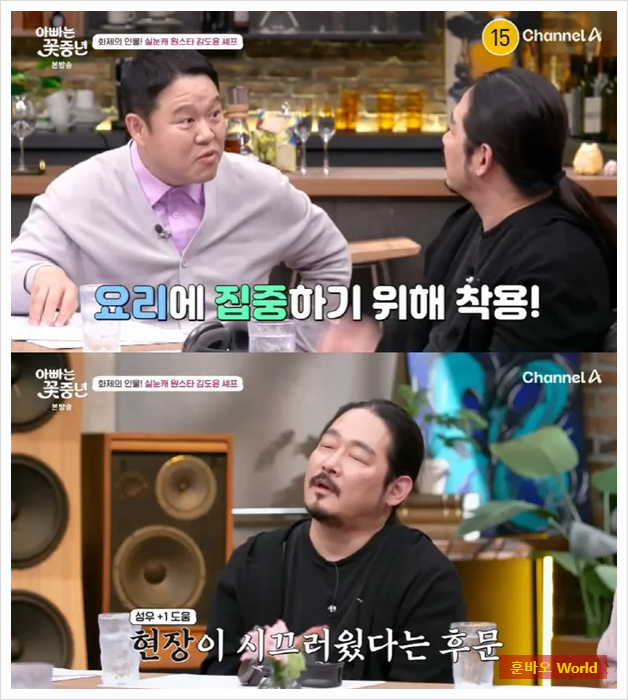 채널A ‘아빠는 꽃중년’에 출연한 김도윤 셰프는 '흑백요리사' 출연 당시 헤드셋을 쓴 이유에 대해 질문을 받았습니다. 김 셰프는 "요리에 더 집중하기 위해 좋아하는 노래를 들으며 마음을 안정시키려 했다"며, 공황장애로 인해 시끄러운 현장에서 마음을 차분하게 만들기 위한 도구로 헤드셋을 사용했다고 설명했습니다.