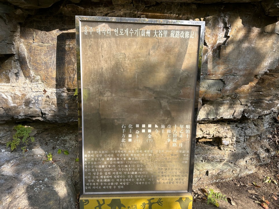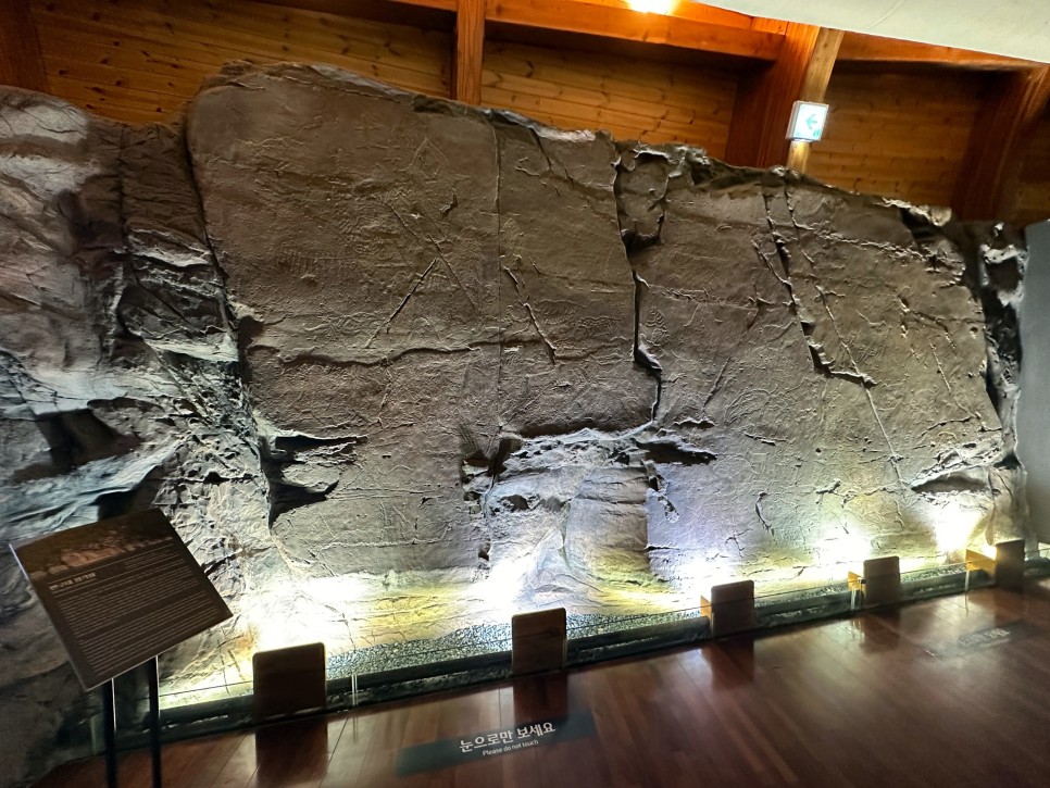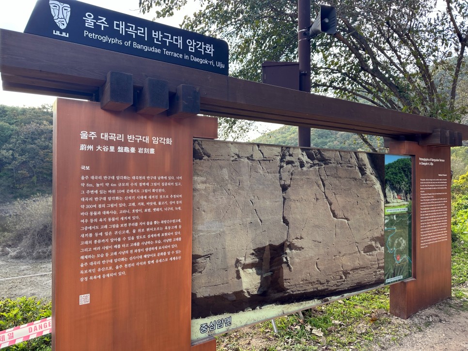 근처에 있는 울주 천전리 암각화와 달리 실물 바로 앞에서 볼 수는 없어서 뭐가 새겨져 있는지는 육안으로는 거의 안 보인다.