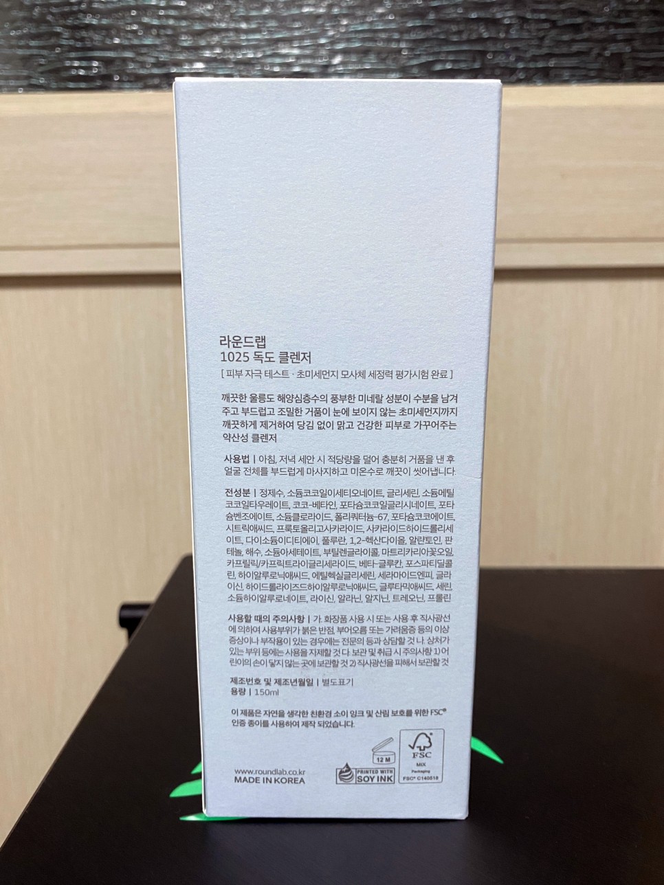 라운드랩 1025 독도 클렌저의 울릉도 해양심층수는 나노 여과막을 이용한 미네랄 워터 제조 특허 기술로 마그네슘, 칼슘, 아연 등 72종의 자연유래 미네랄을 안전하게 담았다.