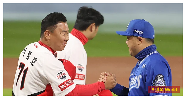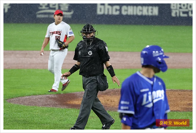 비가 내리기 전까지, 1차전은 투수전이었습니다. 삼성의 원태인은 5이닝 동안 66구를 던지며 KIA 강타선을 무실점으로 틀어막았고, KIA의 제임스 네일 역시 5이닝 76구로 단 1실점만을 기록하며 명품 투수전을 선보였습니다. 비록 6회 초 김헌곤의 홈런이 터지면서 네일이 실점했지만, 그라운드 상황이 악화된 가운데 최선을 다한 투구였습니다.