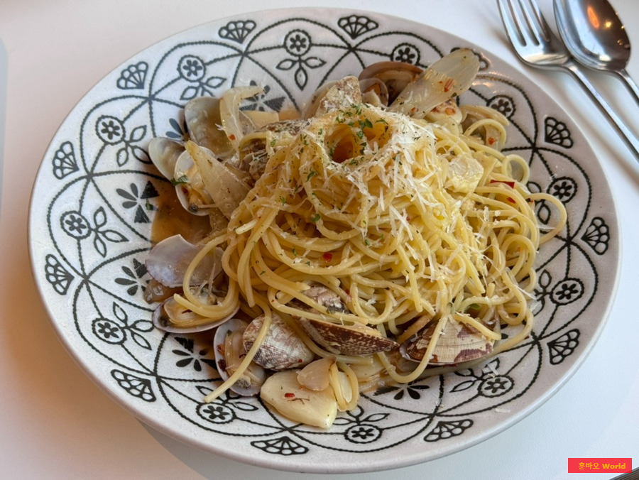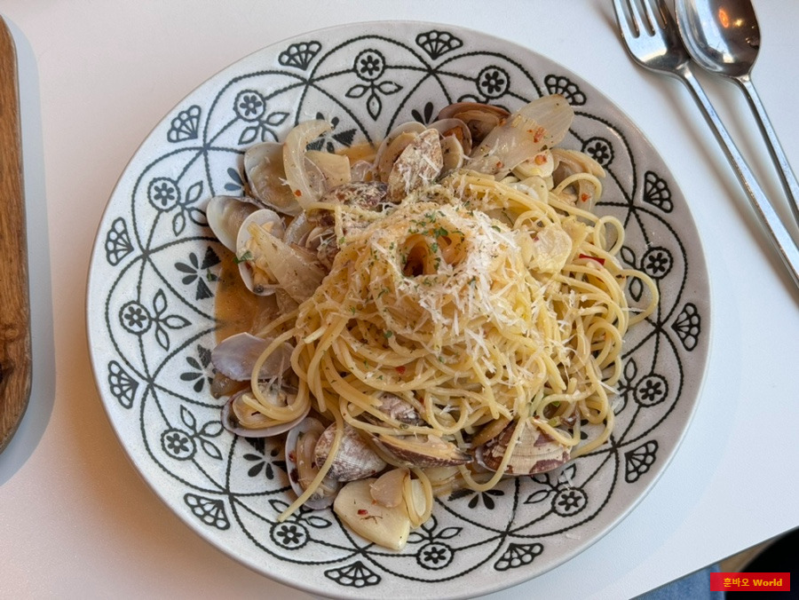 봉골레 파스타는 조개의 시원한 맛과 마늘의 알싸한 풍미가 어우러져 정말 맛있었어요.