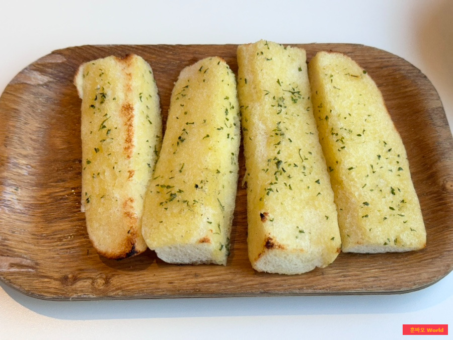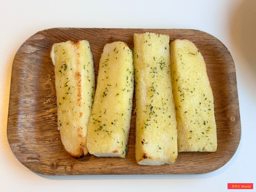 마지막으로 갈릭스틱은 바삭한 갈릭브레드에 달콤한 갈릭소스를 발라 구운 맛이 정말 중독적이었어요.