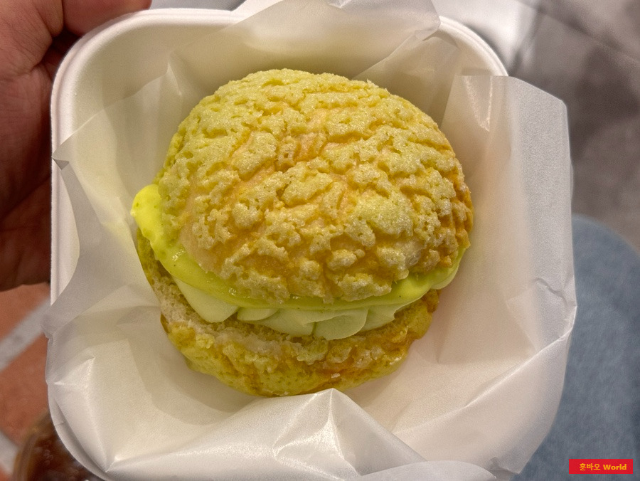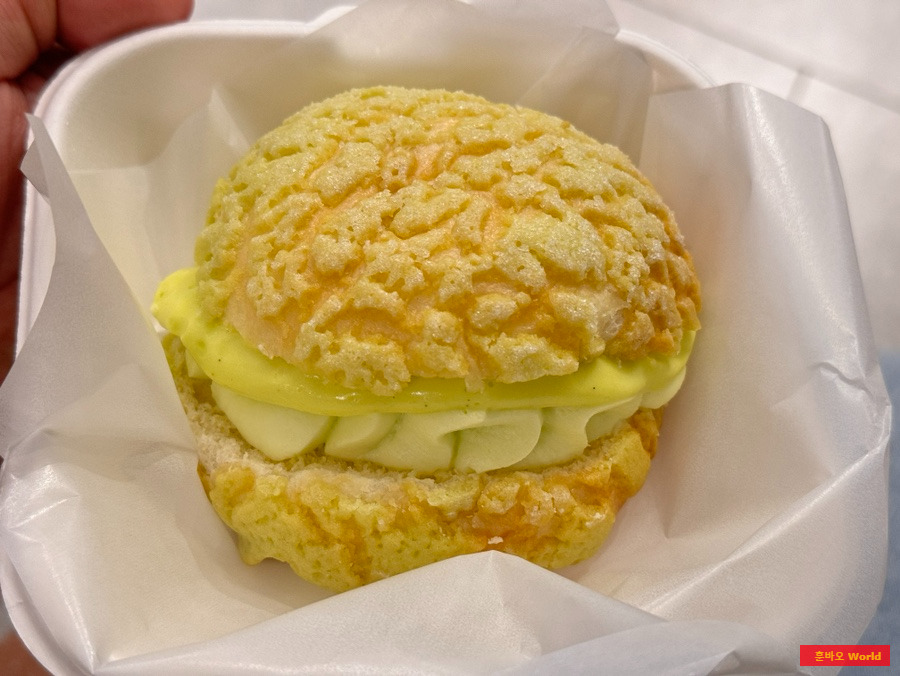 겉은 바삭하고 속은 푹신한 빵 사이에 달콤한 멜론 커스터드 크림이 가득 들어 있어 정말 만족스러웠습니다.