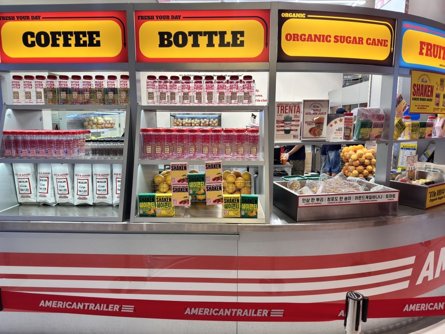 아메리칸 트레일러는 썬키스트 레몬과 오렌지를 직접 공급받아 신선한 과일 착즙 음료를 제공하는 곳이에요.