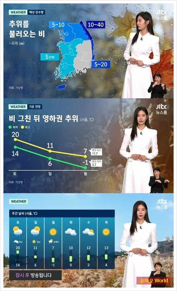 김민주는 15일 방송된 JTBC '뉴스룸'의 말미 날씨 코너에 등장해 깔끔한 화이트 원피스와 긴 생머리로 단아한 매력을 한껏 뽐냈습니다. 그녀는 차분한 목소리로 주말과 다음 주의 날씨를 설명하며 시청자들과 직접 소통하는 모습을 보여줬는데요, 마지막에는 "행복한 주말 보내시길 바랍니다"라는 인사와 함께 수어로 따뜻한 인사를 전해 더욱 큰 감동을 불러일으켰습니다.
