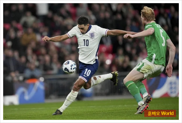 잉글랜드는 전반전 내내 아일랜드 수비에 막히며 고전했습니다. 하지만 후반 6분, 벨링엄이 페널티박스로 빠르게 침투해 상대 반칙을 유도하며 경기의 흐름을 바꿨습니다. 이 장면은 곧 케인의 페널티킥 골로 이어졌고, 아일랜드는 퇴장까지 당하며 균형이 깨졌습니다.