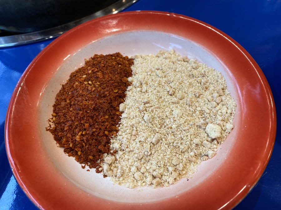 이 소스는 보기엔 그저 고춧가루 + 땅콩가루 같은데